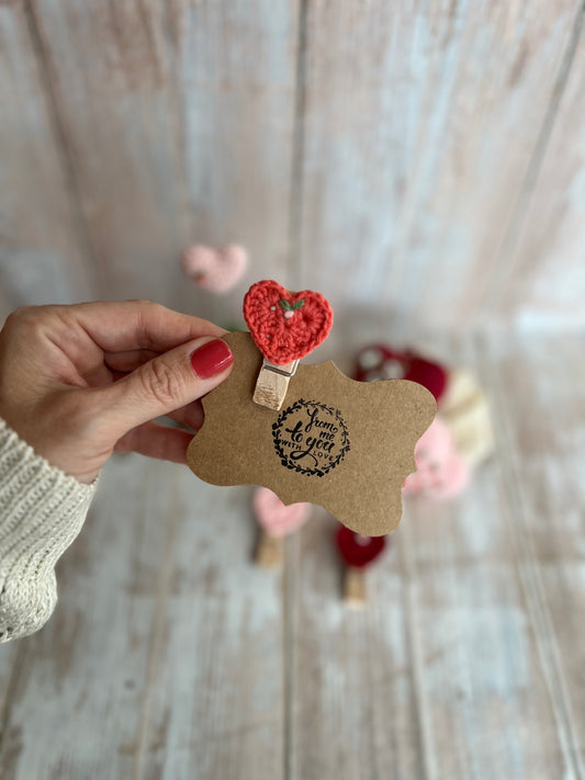 Crochet Heart Peg Clip with Gift Tag, Readymade, Valentines Gift Idea, Unique, Handmade with Love