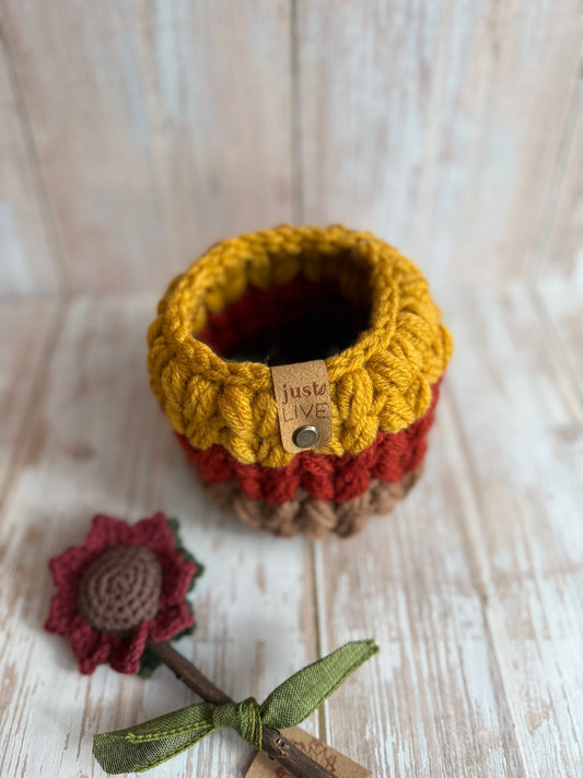 Handmade Autumn Crochet Basket – Cozy Fall Decor in Mustard, Rust & Brown, Chunky Crochet Basket – Fall Harvest Colors, Cozy Fall Storage Basket – Rustic Crochet Decor, Handcrafted Crochet Basket – Warm Autumn Tones