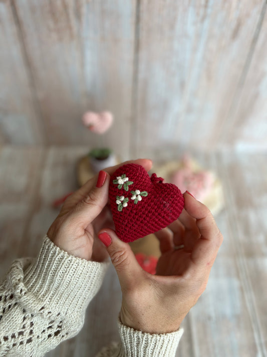 Handmade Embroidered Crochet Heart Decor, Hangable Hearts, Floral Plush Hearts, Valentines Gift Idea, Unique Handmade Gift, Readymade