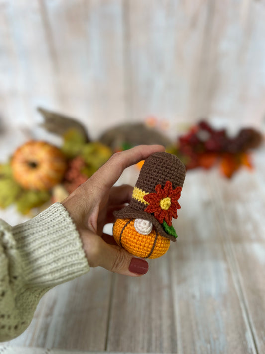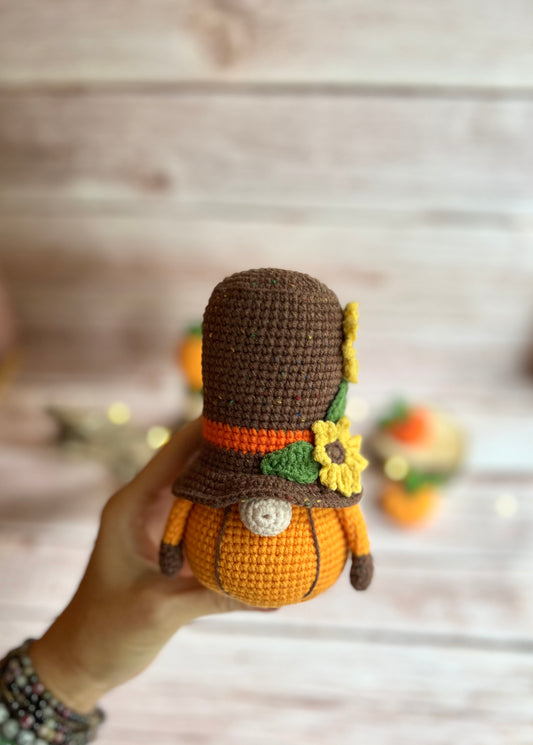 Pumpkin Pete, Harvest Gnome With Pumpkin Body and Brown Hat, Fall-Themed Crocheted Harvest Gnome, Handmade Harvest Gnome with Yellow Flowers
