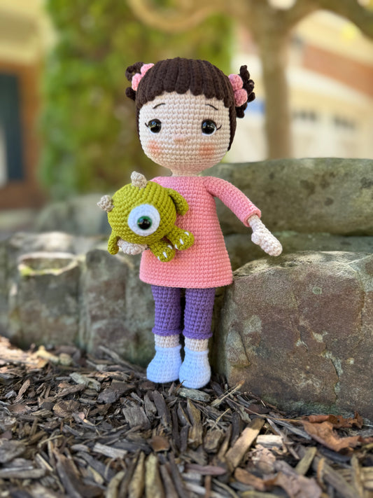 Little Boo in Monster Costume – Hand-Crocheted Amigurumi Doll, Monster Boo – Adorable Hand-Crocheted Doll, Boo in Disguise – Handmade Crochet Collectible, Unique Gift Idea, Birthday Gift
