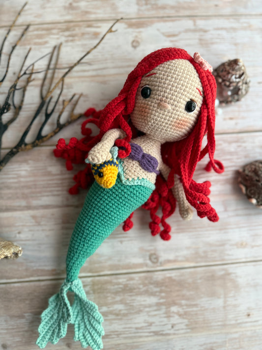 Little Mermaid Ariel & Flounder Crochet Doll Set, Crochet Mermaid Doll, Kids & Nursery Decor, Amigurumi Crochet Gift for Girls & Collectors, Unique Gift