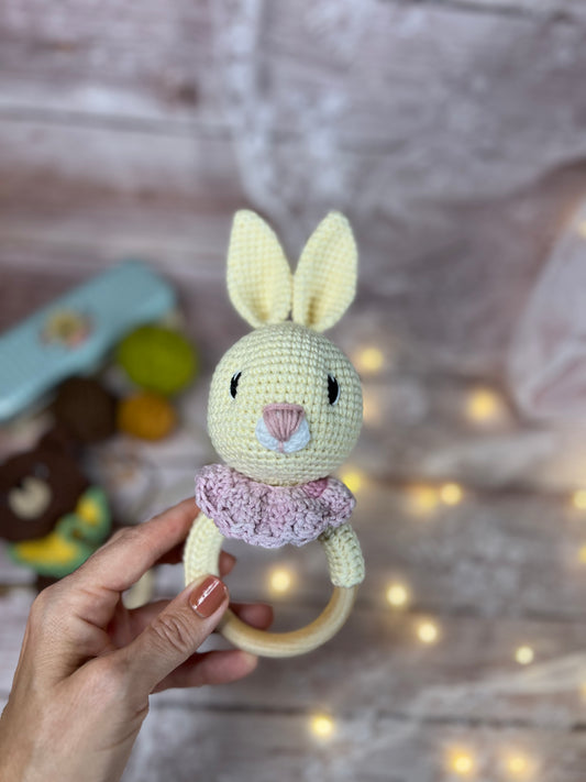 Bunny Rattle, Handmade Bunny Rattle, Readymade, Handcrafted, Handmade Toys, Custom Baby Gifts, Artisan Crochet Toys, Artisanal Baby Shower Presents