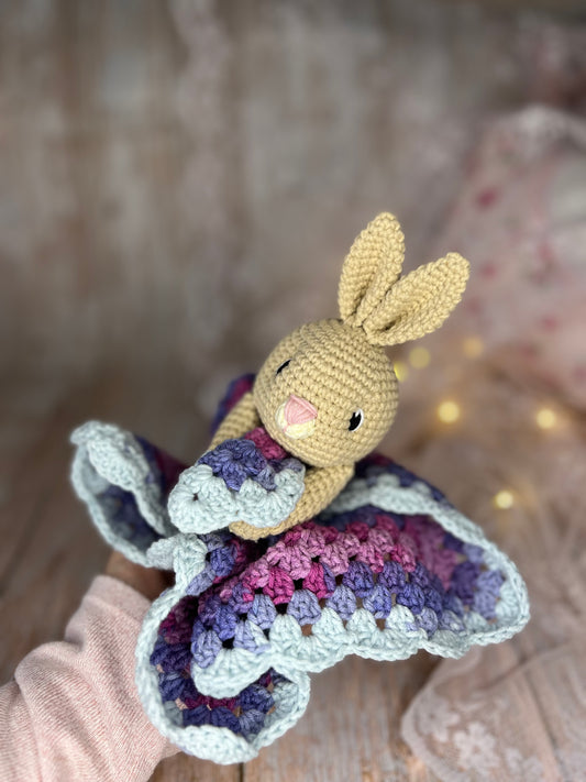 Bunny Lovey Blanket, Handmade Bunny Lovey, Readymade, Handcrafted Snuggler, Handmade Toys, Custom Baby Gifts, Artisan Crochet Toys, Artisanal Baby Shower Presents