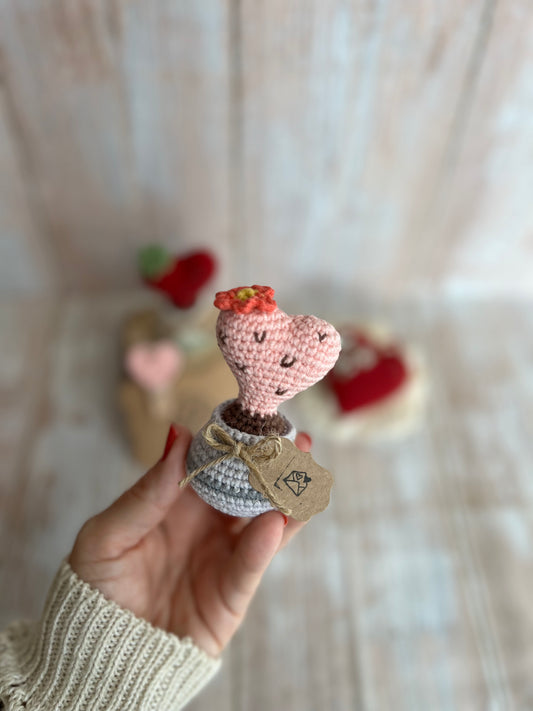 Crocheted Cactus Heart in a Pot, Perfect Valentine’s Gift, Hand Crafted, Readymade, Unique Gift, Embroidered Heart, Anniversary Gift