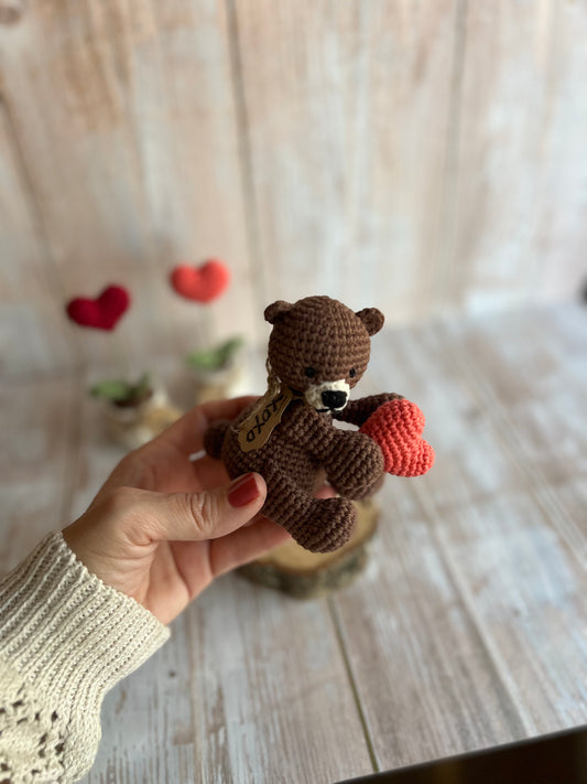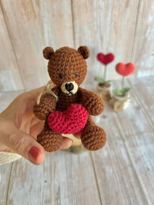 Handmade Crochet Teddy Bear with Red Heart – Perfect Valentine’s Day Gift, Handcrafted, Readymade, Unique Gift for Anniversary