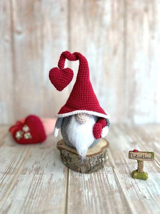 Handmade Valentine’s Gnome, Crocheted Gnome With Hearts, Unique Gift Idea, Valentine’s Day Gift, Anniversary Gift, Handmade Love